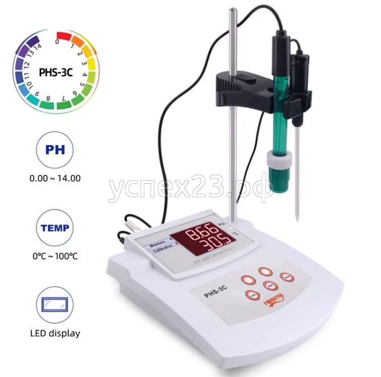 Лабораторный pH-метр PHS-3C предназначен для использования в лабораторных условиях для измерения температуры и уровня pH в водных растворах.